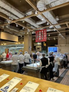 残念でしたが、次の目的地の鈴廣ではかまぼこ・ちくわ作り体験を行いました。自分が作ったちくわは、その場で焼いてくれるので焼きたてを食べることができ、とても美味しかったです!