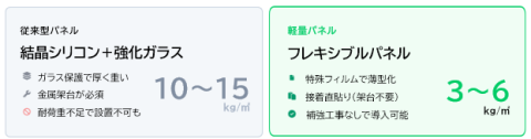 軽量パネル(フレキシブルパネル)は、従来型パネルより製品価格が割高になる傾向がありますが、